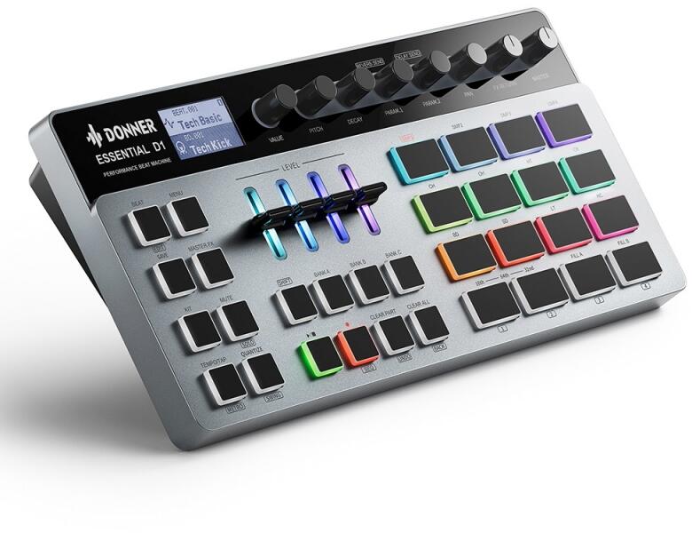 Termékleírás A Donner Performance Beat Machine egy sokoldalú hangszer, amely tökéletes választás dobosok és zenei producerek számára. Két munkafolyamat egyesítésével a real-time felvétel és a lépésszekvencer funkciója lehetővé teszi, hogy zökkenőmentesen illeszkedjen a kreatív folyamatokhoz. Az érintésérzékeny encoderek biztosítják a precíz vezérlést, miközben a felhasználók az LCD képernyőn valós időben láthatják a paraméterek értékeit. Ez a lehetőség jelentősen megkönnyíti a hangzás finomhangolását és a zenei ötletek megvalósítását. A gyári tartalom, amely a Loopmasters partnerség eredménye, számos zenei műfajhoz tökéletesen illeszkedik. Ezzel az eszközzel 16 dobkészlet és 64 beatminta áll rendelkezésére, ami ideális alapot ad a zenéléshez. Az AUX IN csatlakozó és a teljes méretű MIDI I/O port lehetővé teszi a tökéletes integrációt más zenei eszközökkel, így B1 Bass Synthesizerrel párosítva egy átfogó zenei beállítást hozhat létre. Az intuitív, színkódolt felhasználói felület nemcsak esztétikai élményt nyújt, hanem javítja a zenei teljesítményt is. A játékosok könnyedén navigálhatnak a sávok között, fokozva a produktivitásukat és kreativitásukat. Gyártó A Donner márka által gyártott termékek megbízható minőségéről és innovatív megoldásairól ismertek a zenei világban. A cég célja, hogy elérhető áron kínáljon kiváló minőségű hangszeres megoldásokat, amelyek inspirálják a zenészeket a kreativitásuk kifejezésére. A Donner folyamatosan fejleszti termékeit, hogy lépést tartson a modern zenei igényekkel, és olyan eszközöket kínál, amelyek segítségével a felhasználók könnyedén kifejezhetik zenei ötleteiket. Az ilyen tudatos tervezés és a felhasználói tapasztalat kiemelkedő prioritás a cég számára.